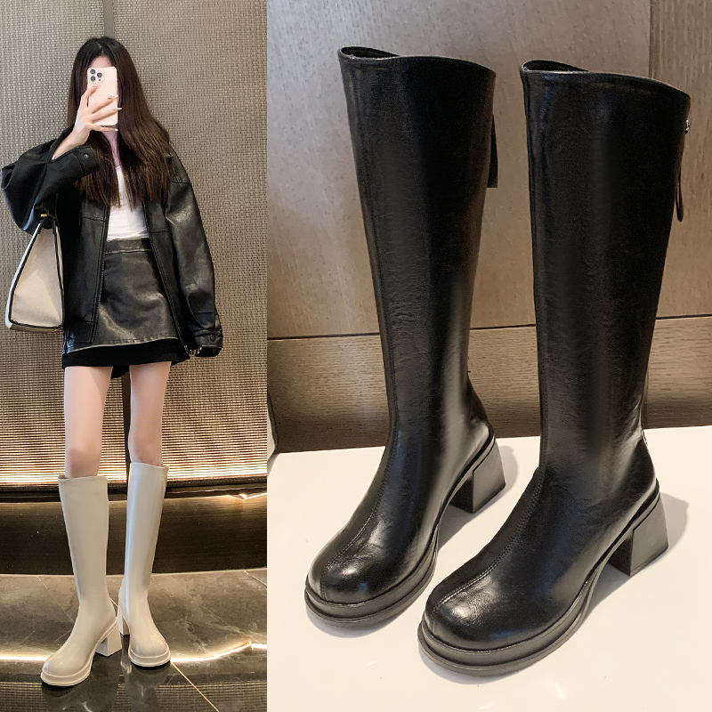 女靴子靴子韩版潮时尚保暖防滑长靴圆头粗跟