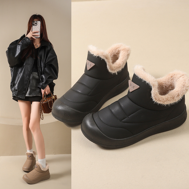 女靴子靴子韩版潮时尚保暖防滑绒面短靴圆头