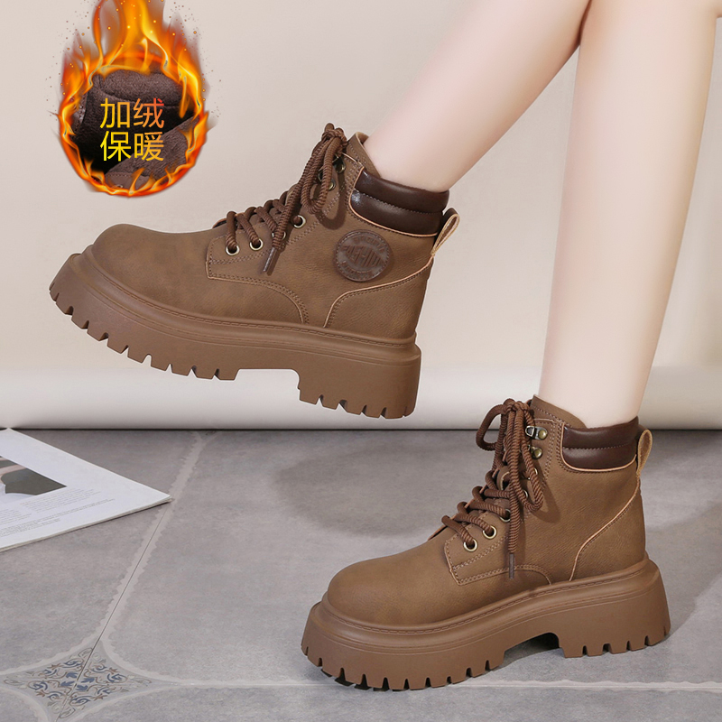 女靴子靴子韩版潮时尚保暖防滑短靴圆头粗跟