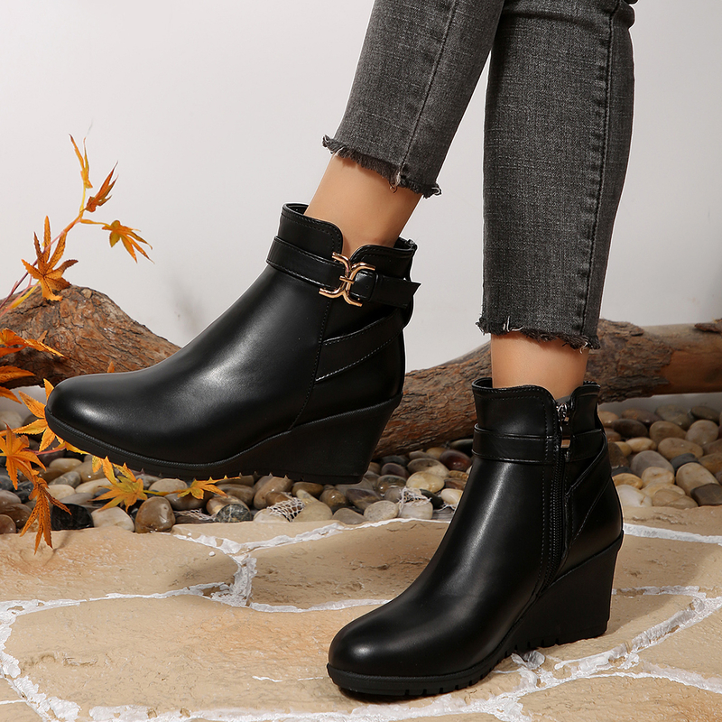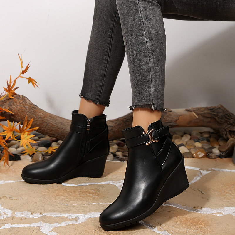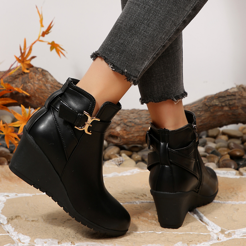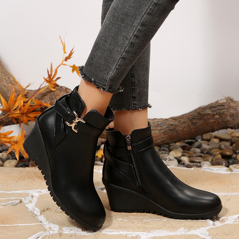 女靴子靴子韩版潮时尚保暖防滑短靴圆头粗跟