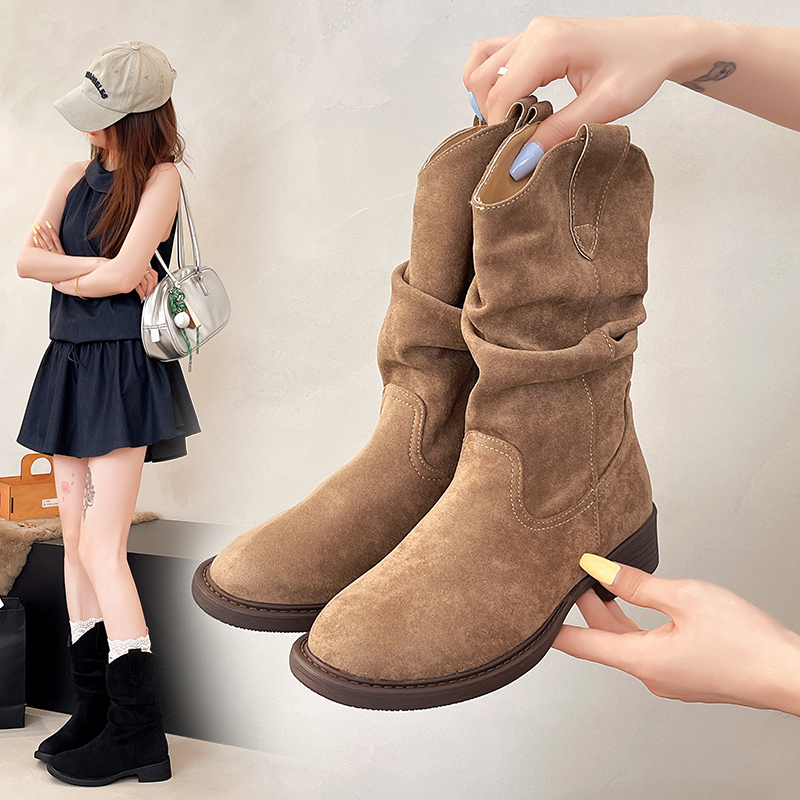 女靴子靴子韩版潮时尚保暖防滑短靴圆头粗跟