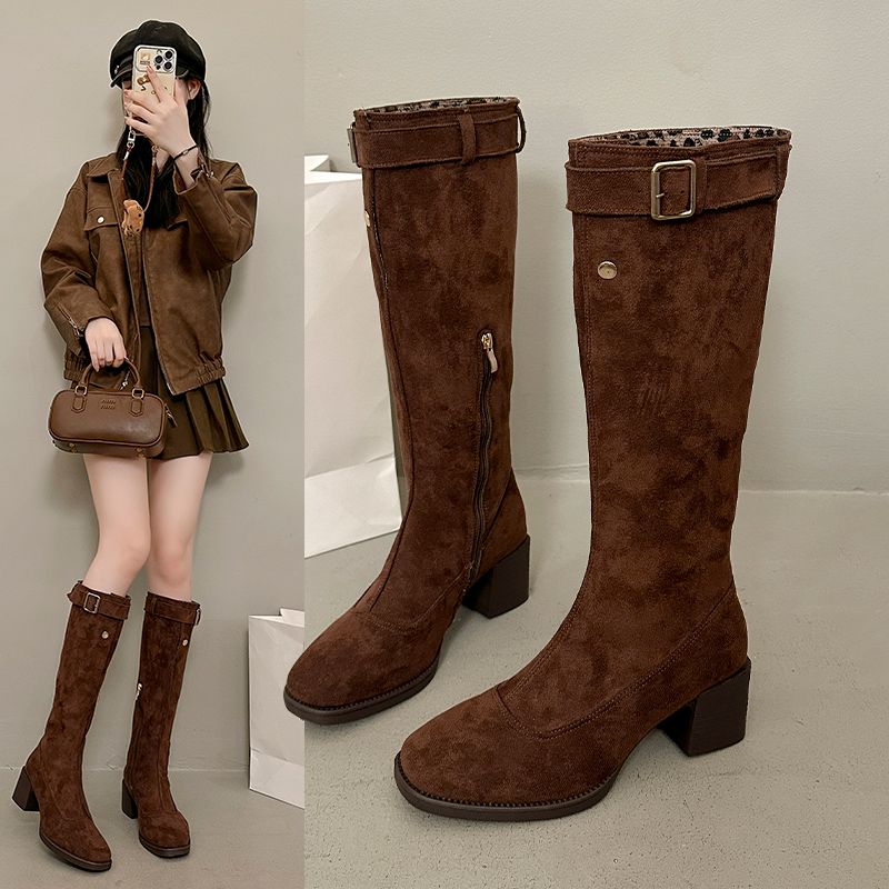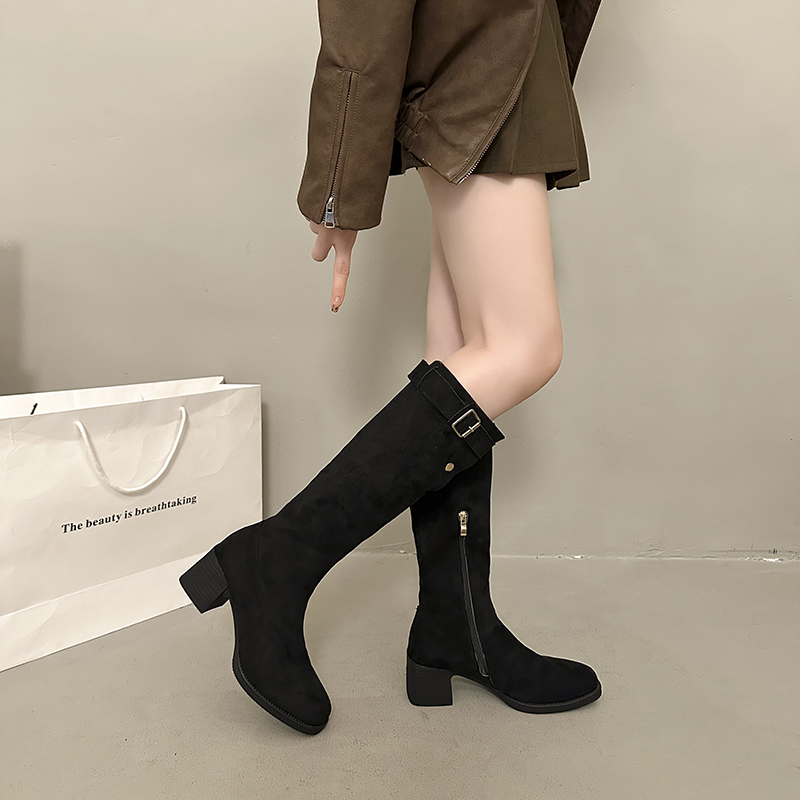 女靴子靴子韩版潮时尚保暖防滑长靴圆头粗跟