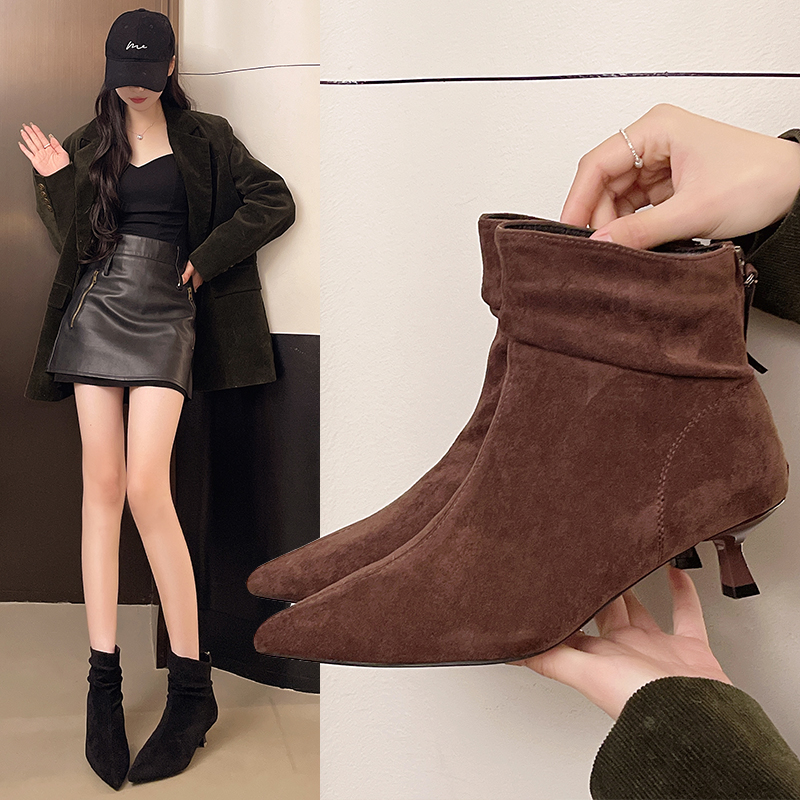 女靴子靴子韩版潮时尚保暖防滑短靴圆头粗跟