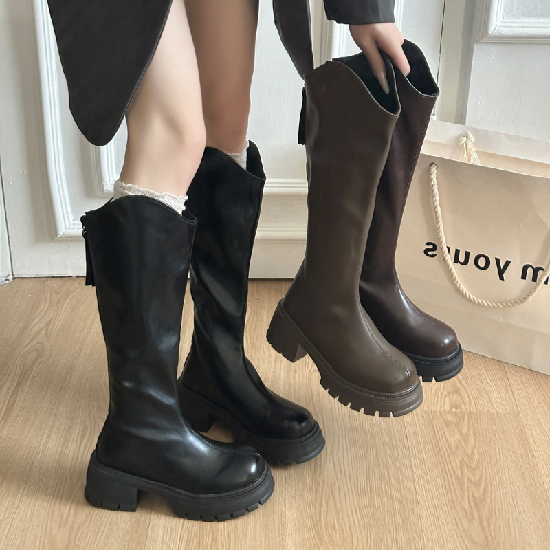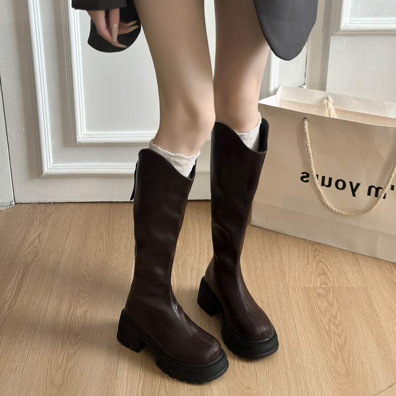 女靴子靴子韩版潮时尚保暖防滑长靴圆头粗跟