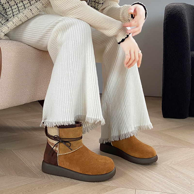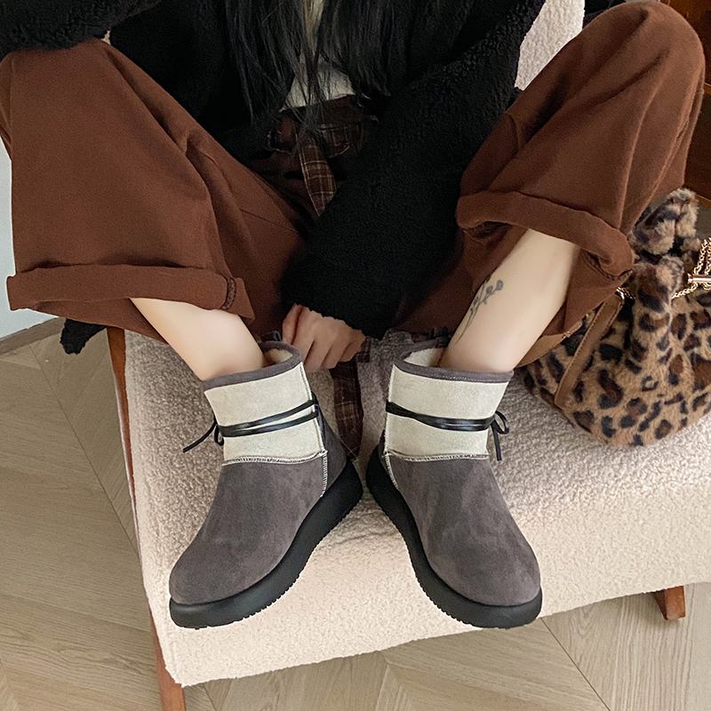 女靴子靴子韩版潮时尚保暖防滑绒面短靴圆头