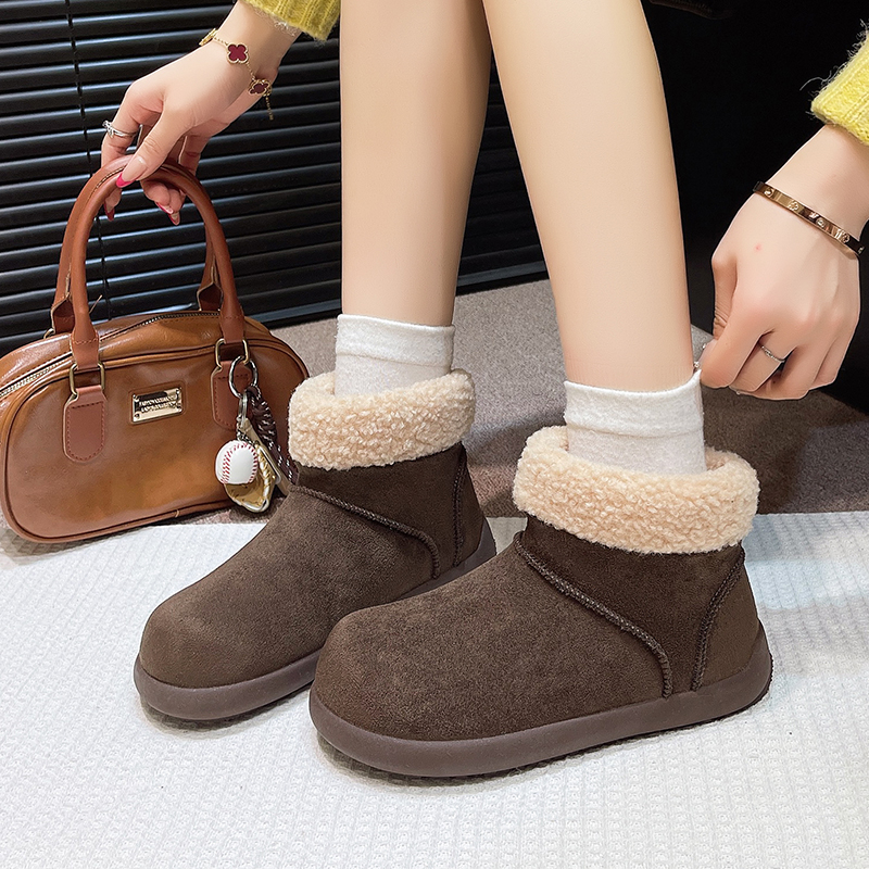 女靴子靴子韩版潮时尚保暖防滑绒面短靴圆头