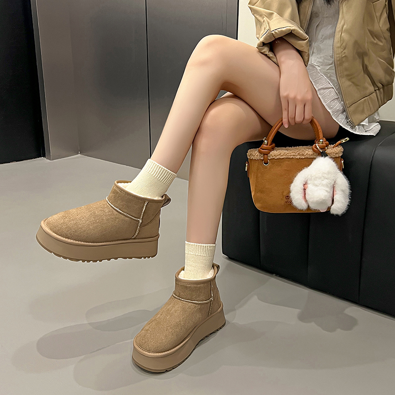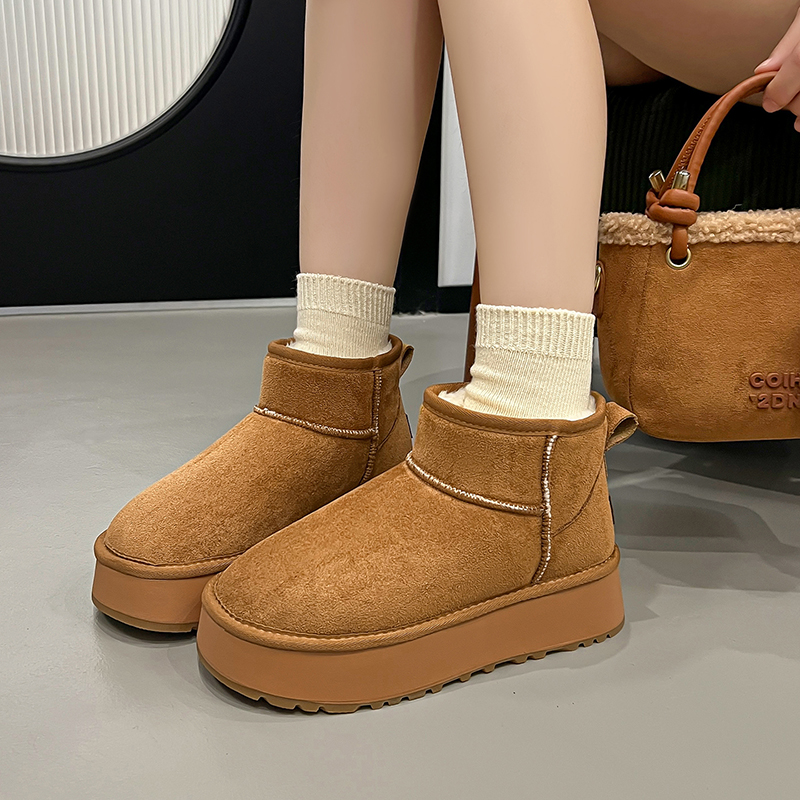 女靴子靴子韩版潮时尚保暖防滑绒面短靴圆头