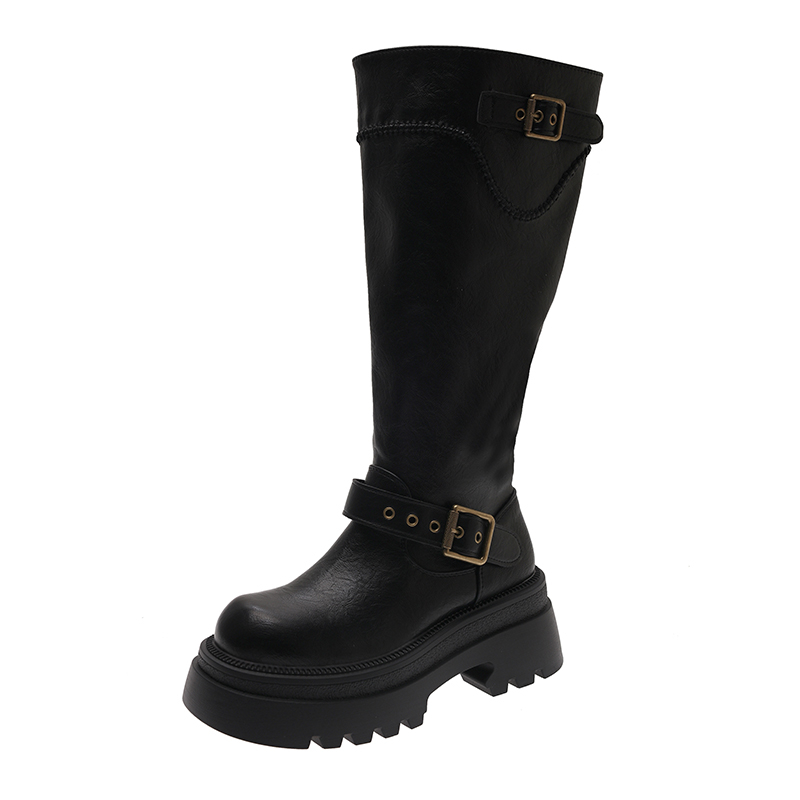 女靴子靴子韩版潮时尚保暖防滑长靴圆头粗跟