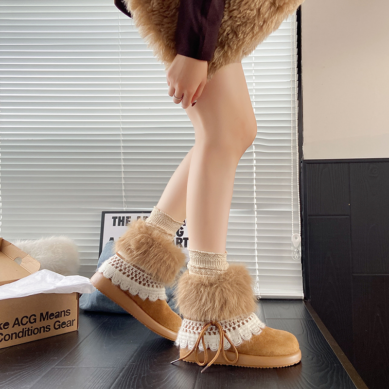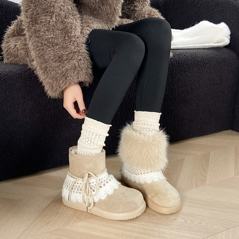 女靴子靴子韩版潮时尚保暖防滑绒面短靴圆头