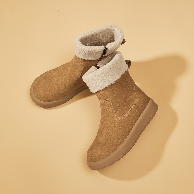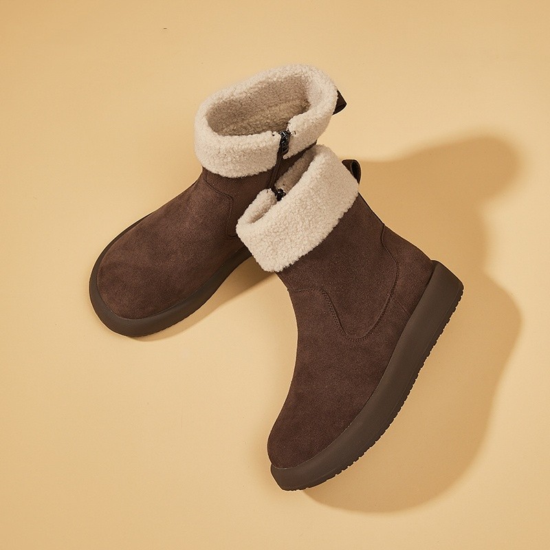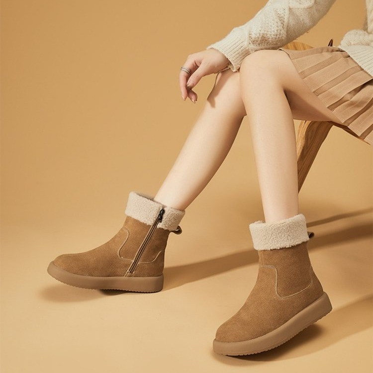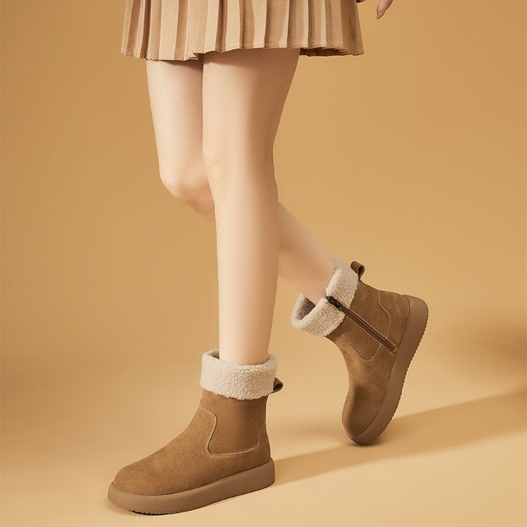 女靴子靴子韩版潮时尚保暖防滑绒面短靴圆头