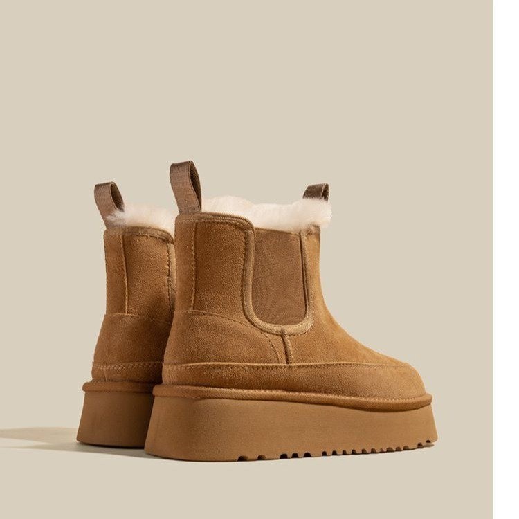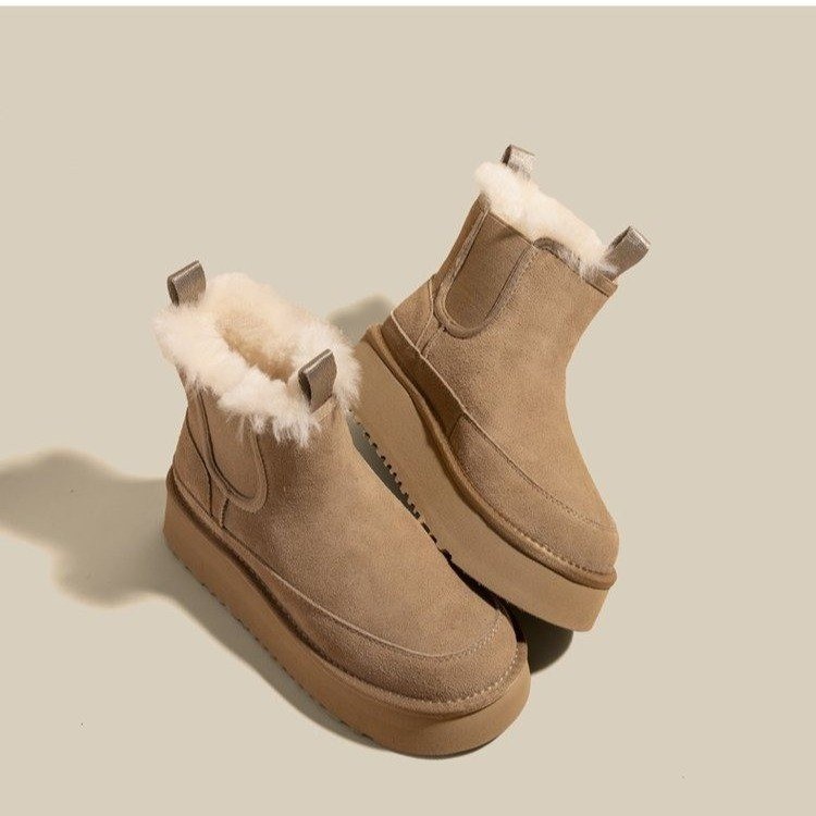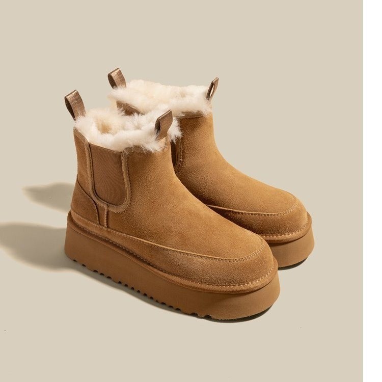 女靴子靴子韩版潮时尚保暖防滑绒面短靴圆头