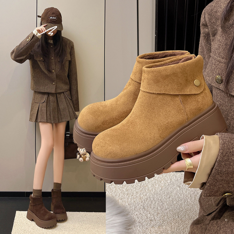 女靴子靴子韩版潮时尚保暖防滑短靴圆头粗跟