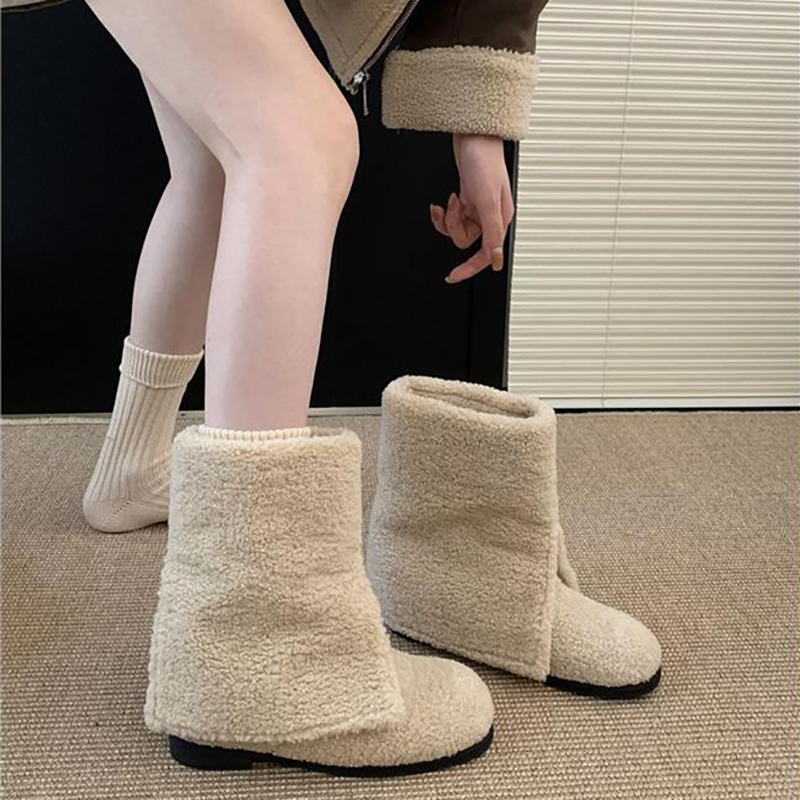 女靴子靴子韩版潮时尚保暖防滑绒面短靴圆头