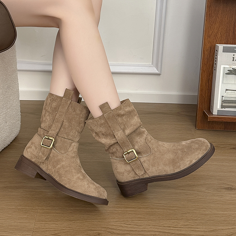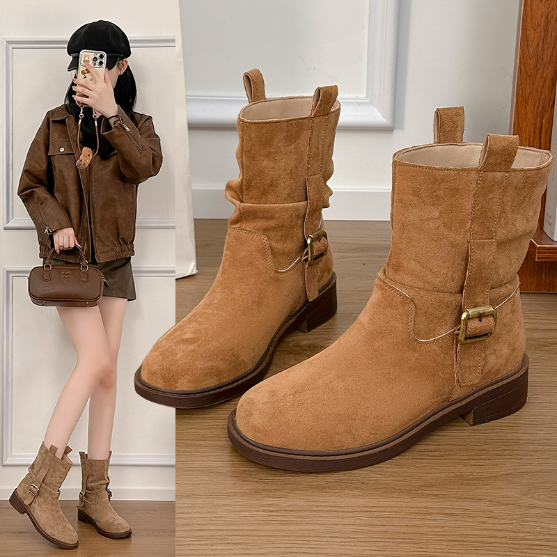 女靴子靴子韩版潮时尚保暖防滑短靴圆头粗跟