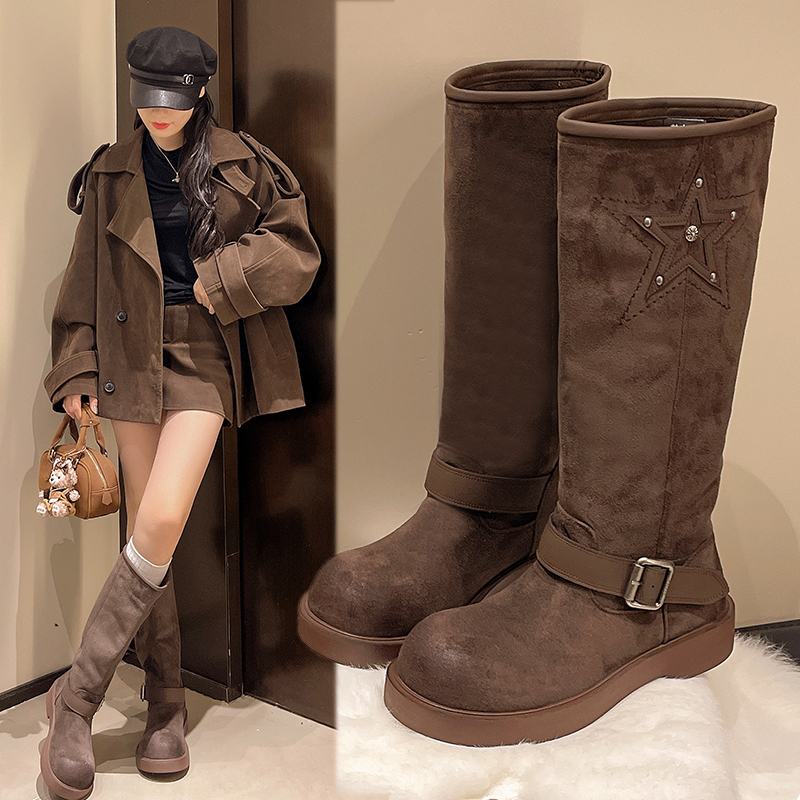 女靴子靴子韩版潮时尚保暖防滑长靴圆头粗跟
