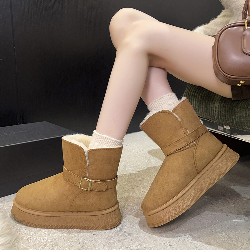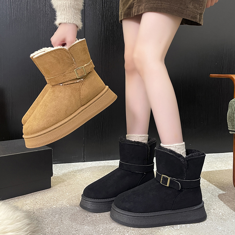 女靴子靴子韩版潮时尚保暖防滑绒面短靴圆头