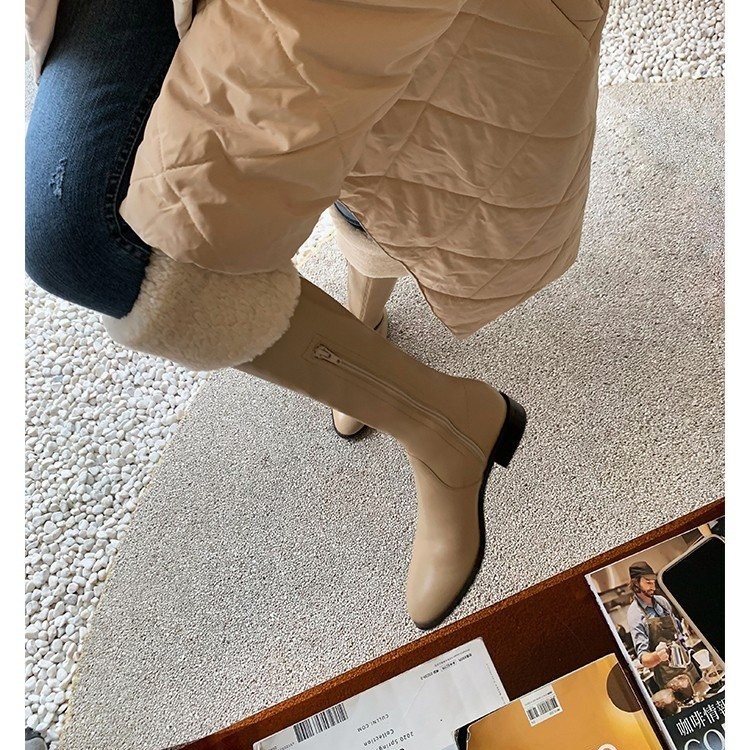 女靴子靴子韩版潮时尚保暖防滑长靴圆头粗跟