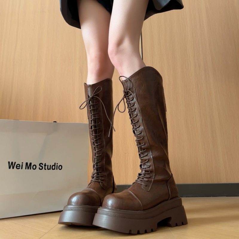女靴子靴子韩版潮时尚保暖防滑长靴圆头粗跟