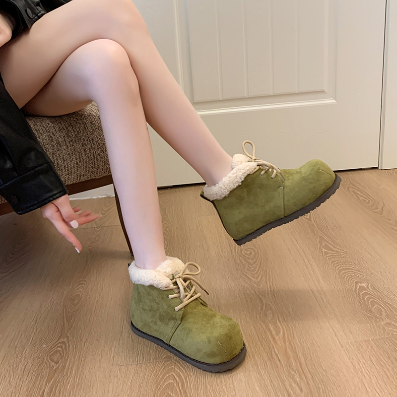 女靴子靴子韩版潮时尚保暖防滑绒面短靴圆头