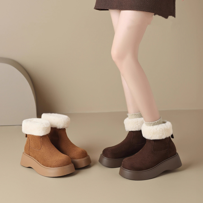 女靴子靴子韩版潮时尚保暖防滑绒面短靴圆头