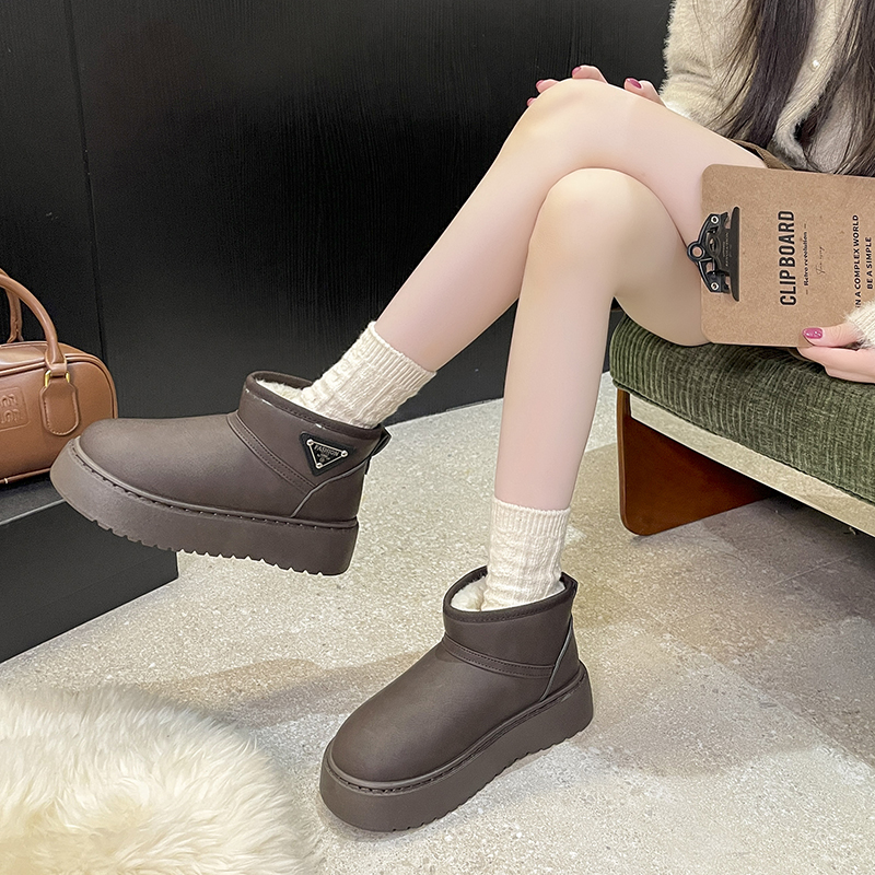 女靴子靴子韩版潮时尚保暖防滑绒面短靴圆头