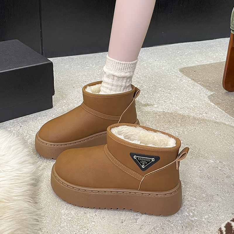 女靴子靴子韩版潮时尚保暖防滑绒面短靴圆头
