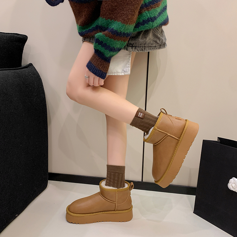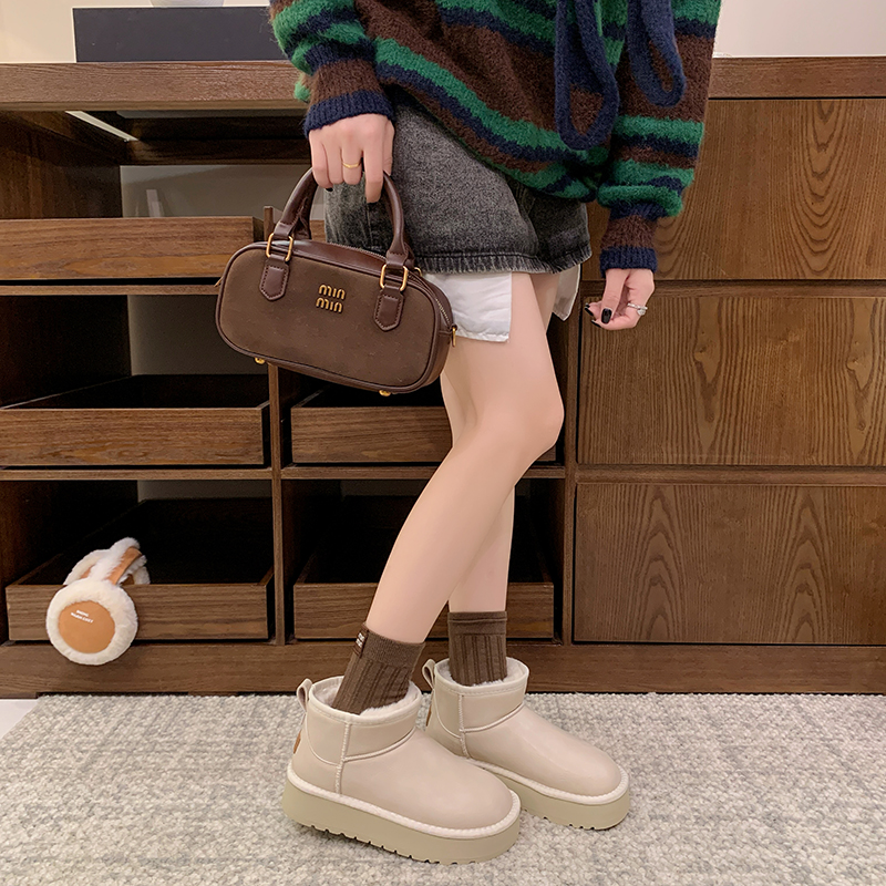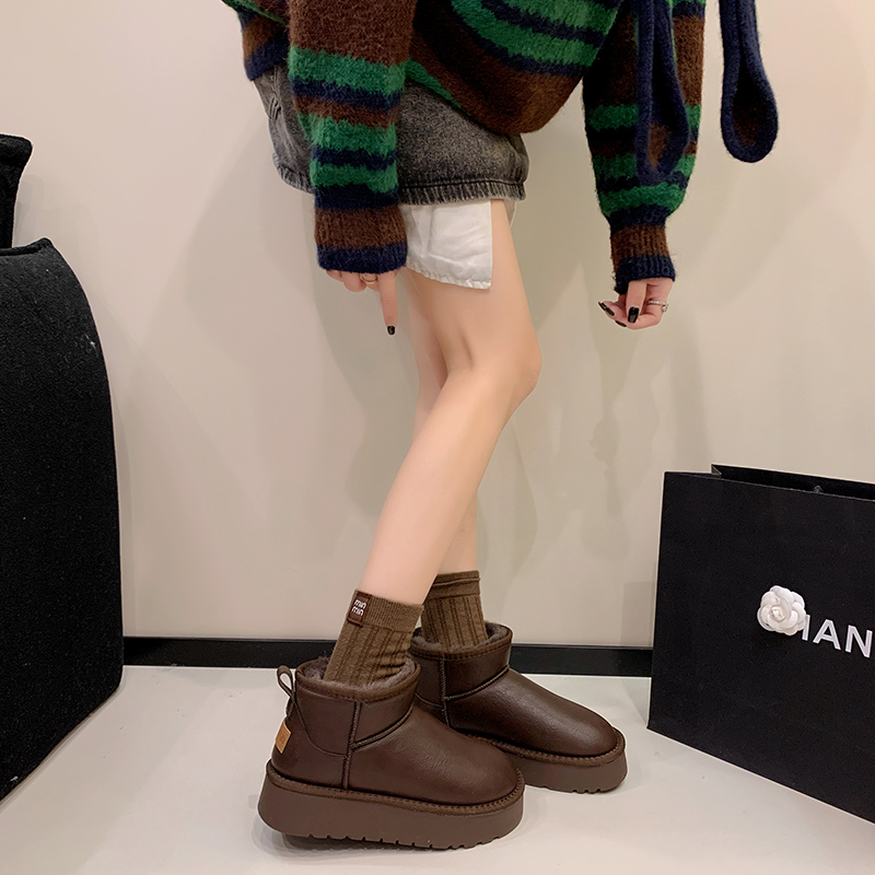 女靴子靴子韩版潮时尚保暖防滑绒面短靴圆头