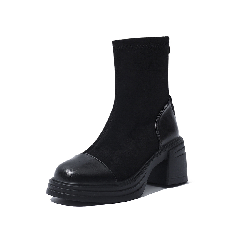 女靴子靴子韩版潮时尚保暖防滑短靴圆头粗跟