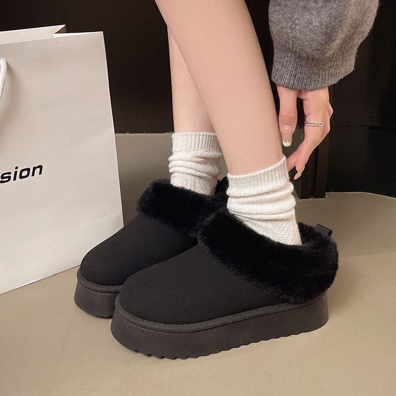 女靴子靴子韩版潮时尚保暖防滑绒面短靴圆头