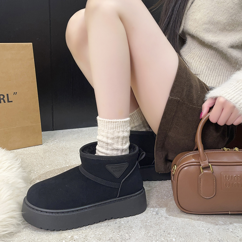 女靴子靴子韩版潮时尚保暖防滑绒面短靴圆头