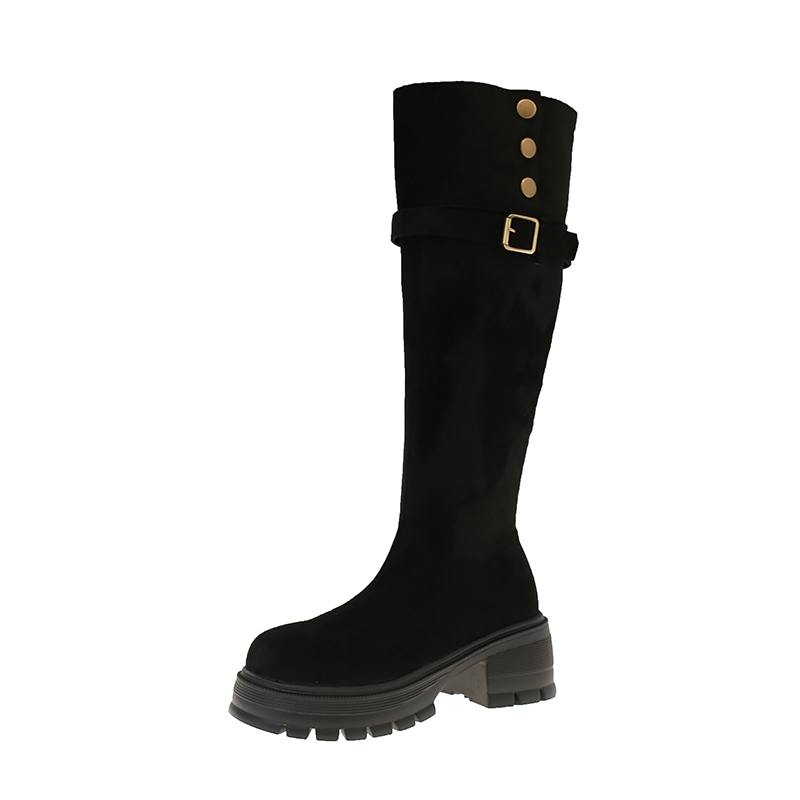 女靴子靴子韩版潮时尚保暖防滑长靴圆头粗跟
