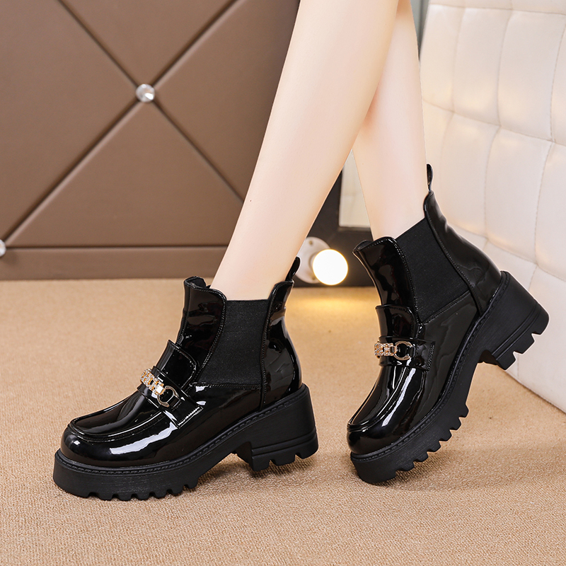 女靴子靴子韩版潮时尚保暖防滑短靴圆头粗跟