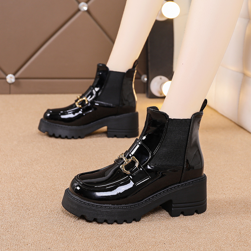 女靴子靴子韩版潮时尚保暖防滑短靴圆头粗跟