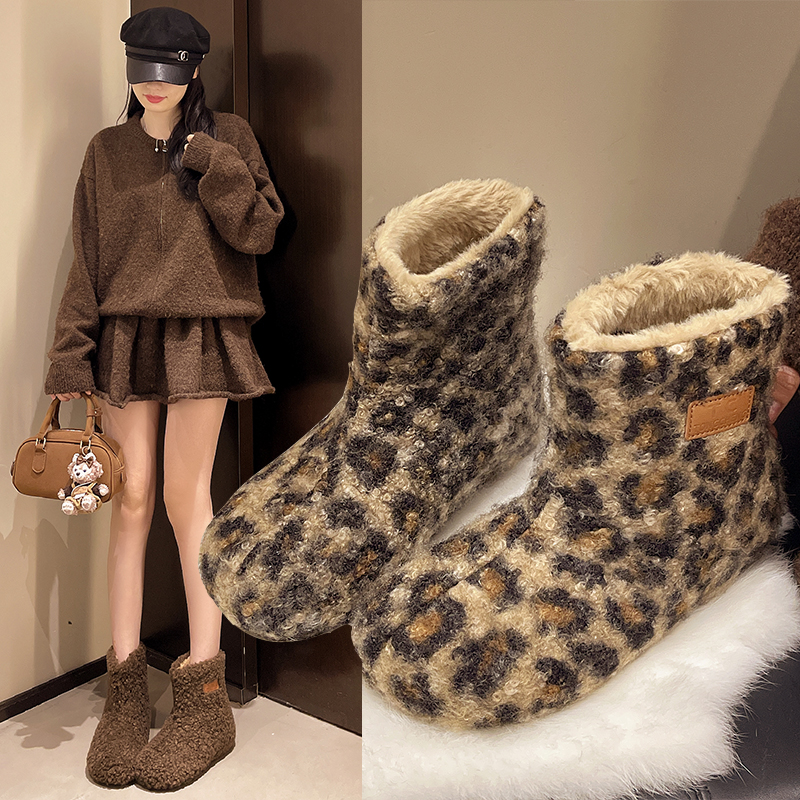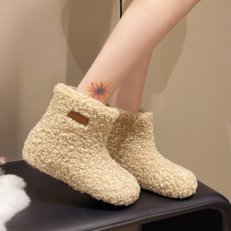 女靴子靴子韩版潮时尚保暖防滑绒面短靴圆头