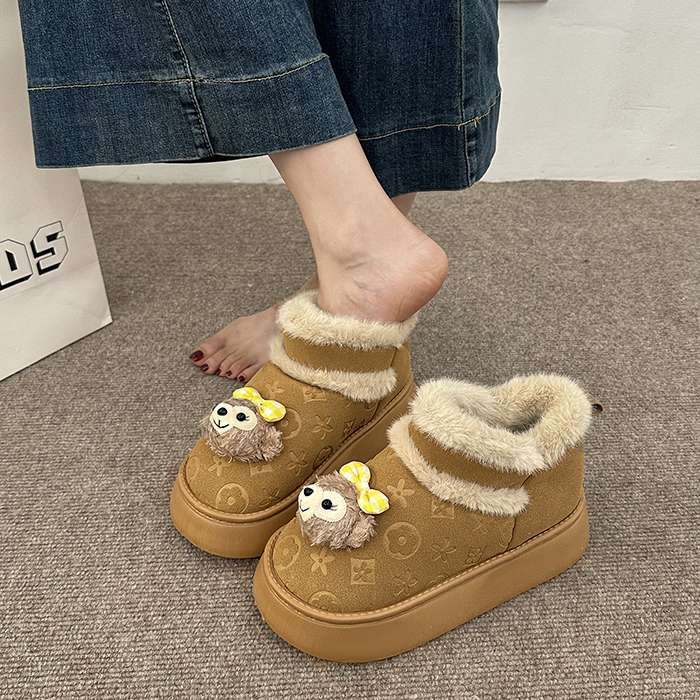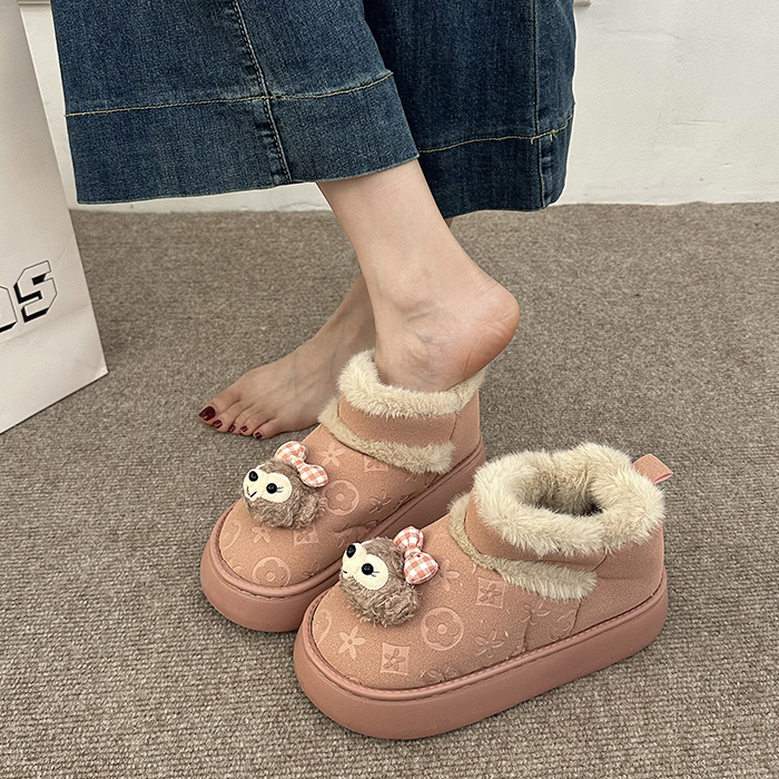 女靴子靴子韩版潮时尚保暖防滑绒面短靴圆头