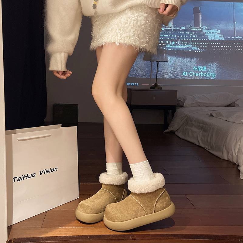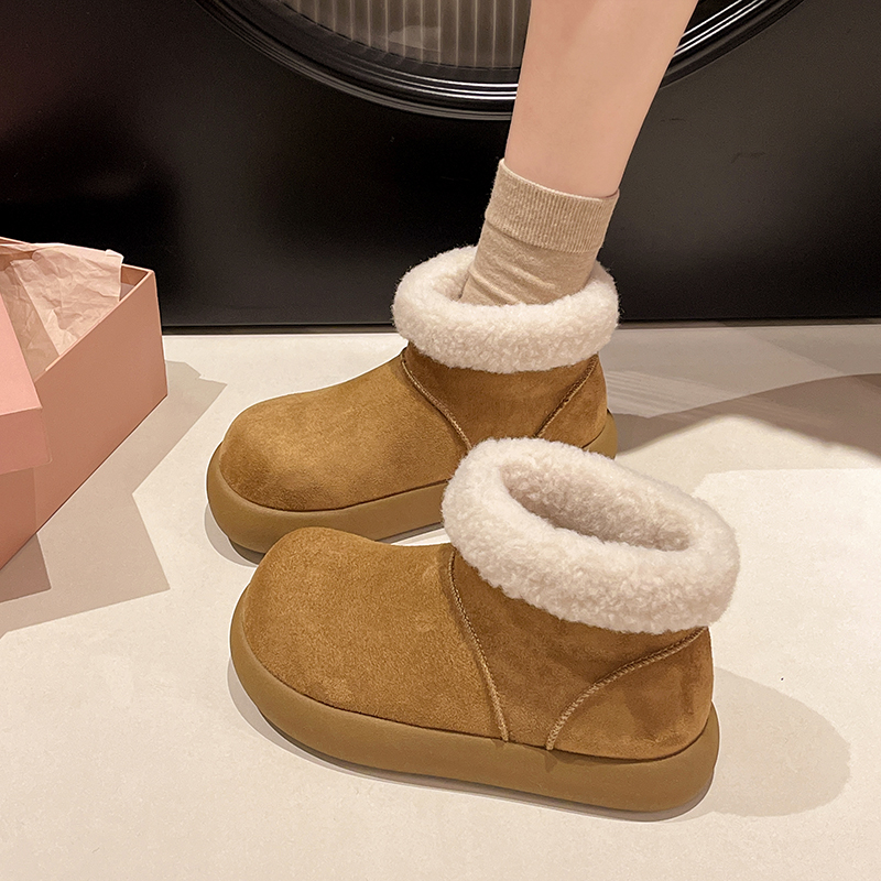 女靴子靴子韩版潮时尚保暖防滑绒面短靴圆头