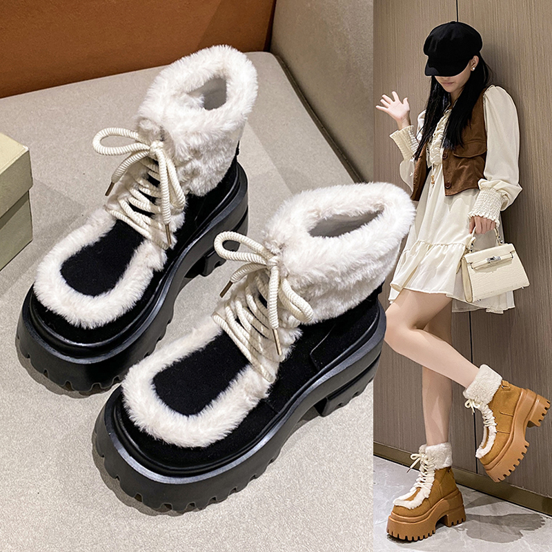 女靴子靴子韩版潮时尚保暖防滑短靴圆头粗跟