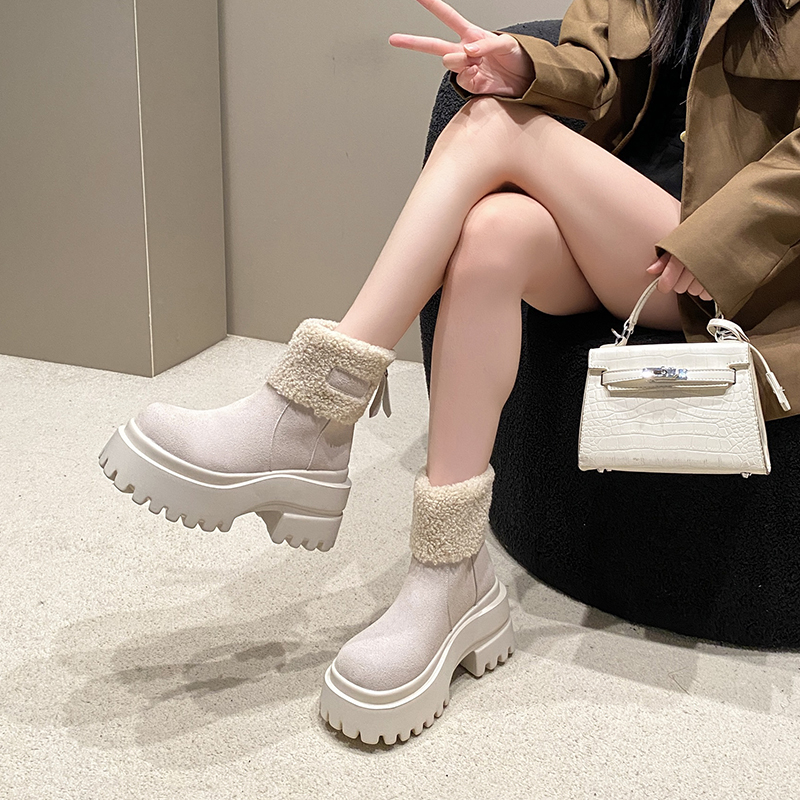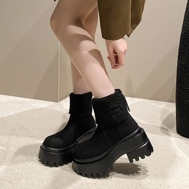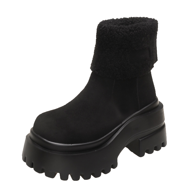 女靴子靴子韩版潮时尚保暖防滑绒面短靴圆头