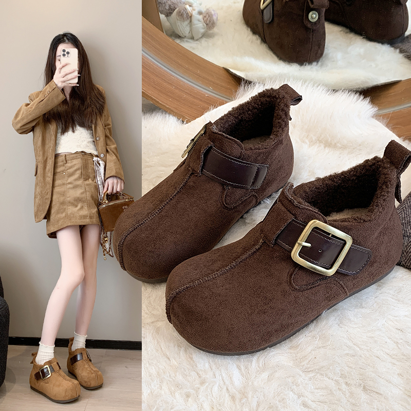 女靴子靴子韩版潮时尚保暖防滑短靴圆头粗跟