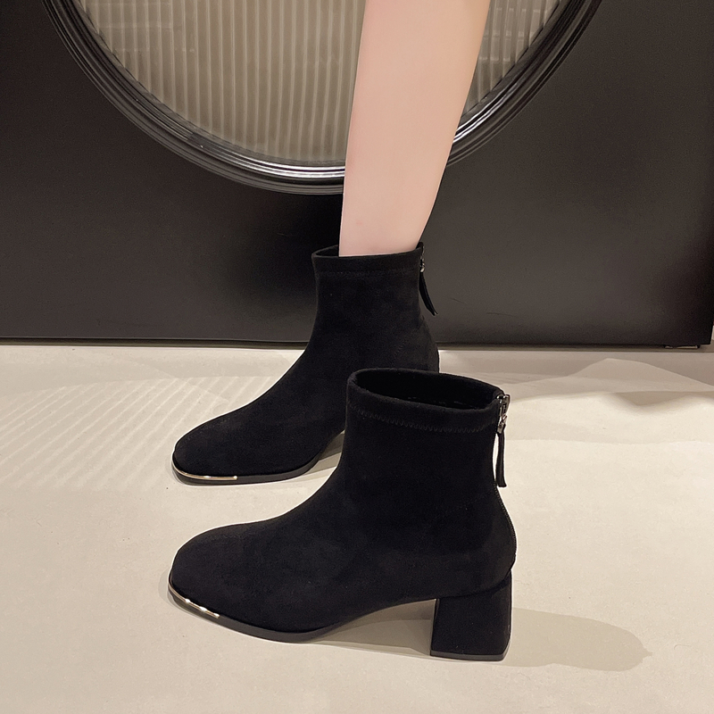女靴子靴子韩版潮时尚保暖防滑短靴圆头粗跟