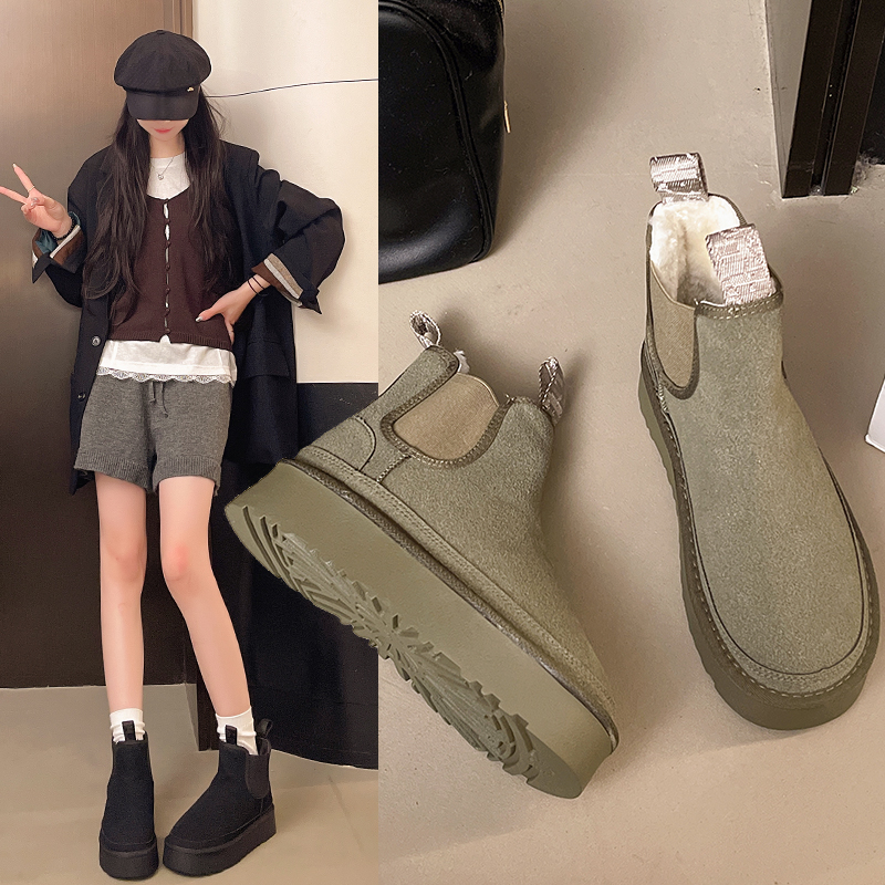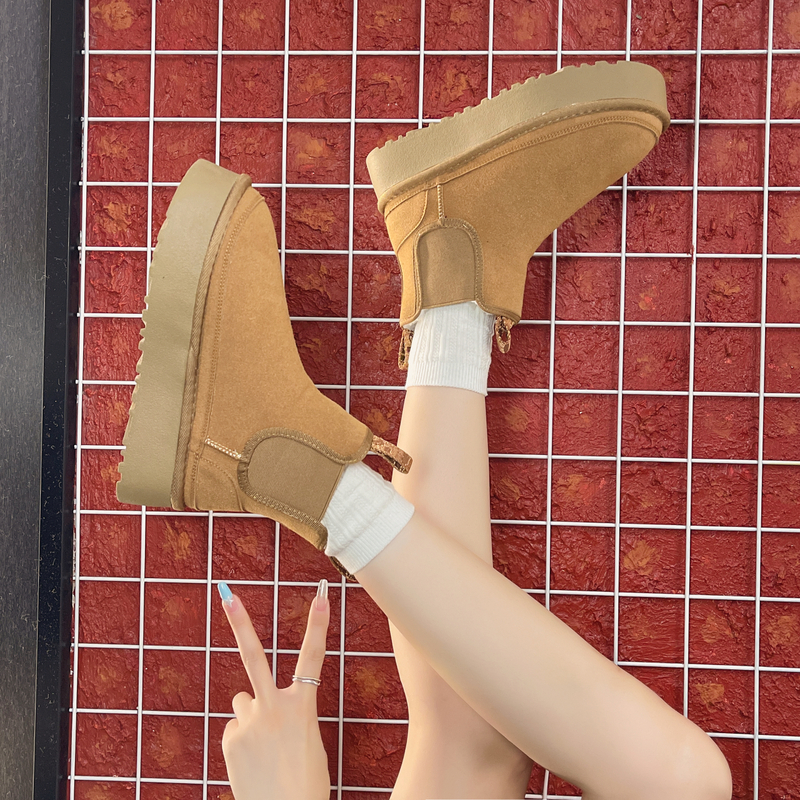 女靴子靴子韩版潮时尚保暖防滑绒面短靴圆头
