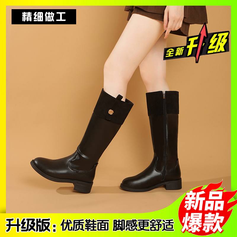 女靴子靴子韩版潮时尚保暖防滑长靴圆头粗跟
