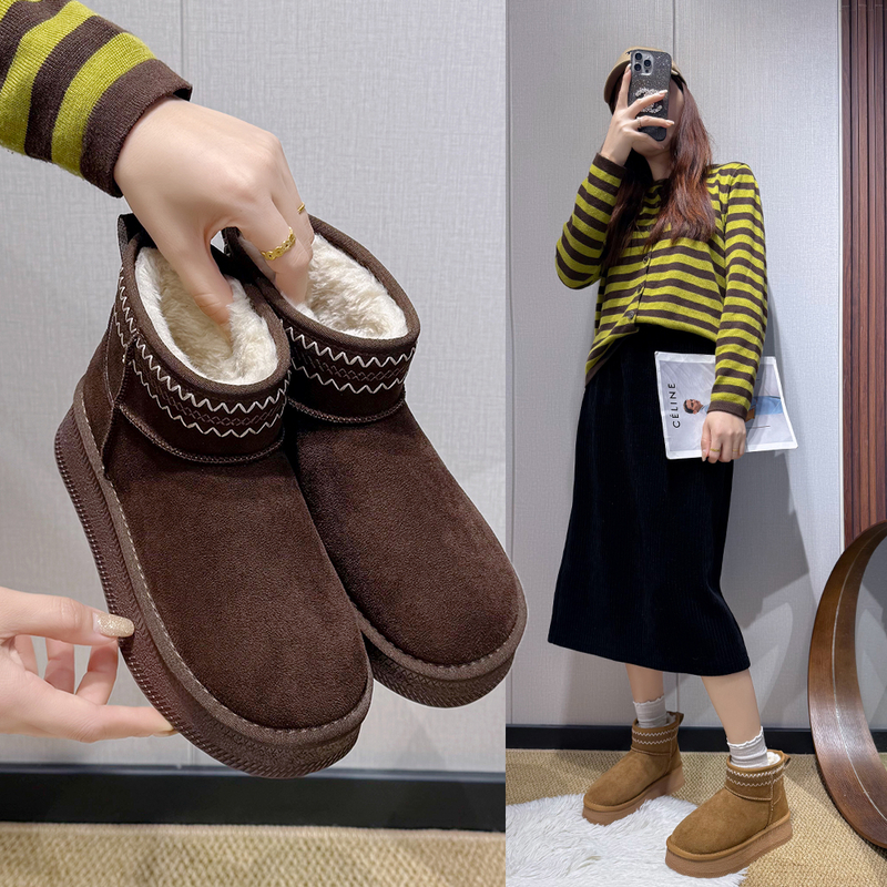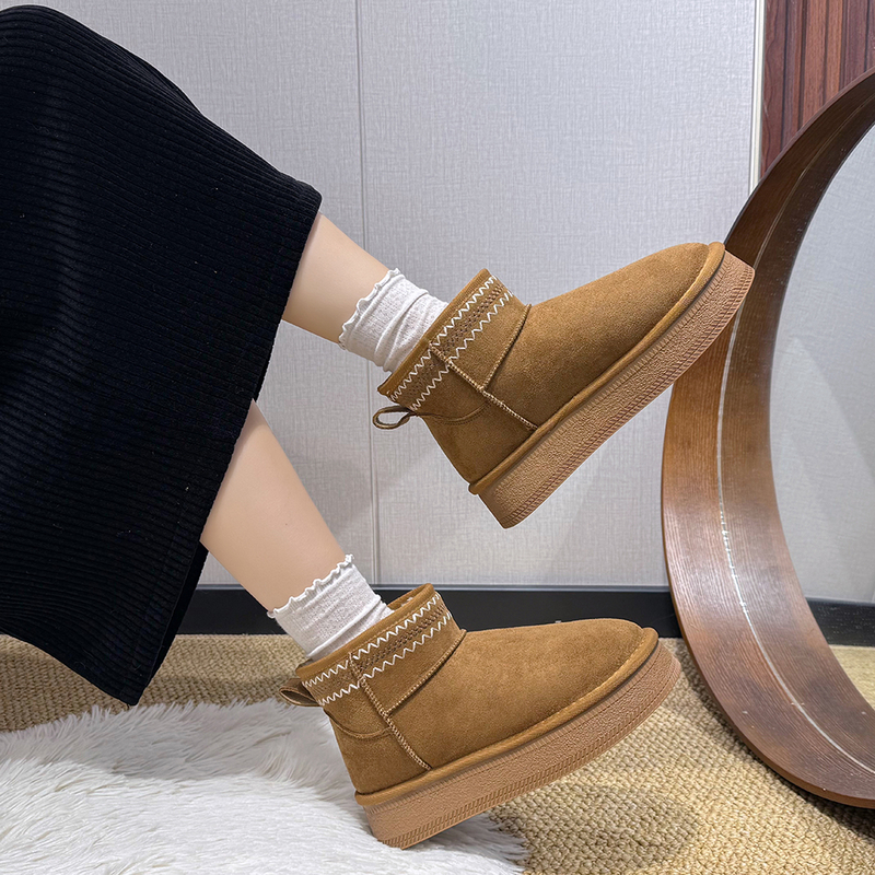 女靴子靴子韩版潮时尚保暖防滑绒面短靴圆头