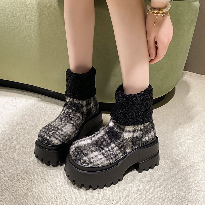 女靴子靴子韩版潮时尚保暖防滑绒面短靴圆头