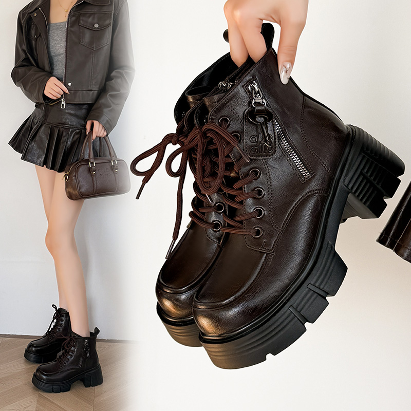 女靴子靴子韩版潮时尚保暖防滑短靴圆头粗跟