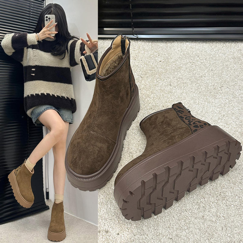女靴子靴子韩版潮时尚保暖防滑短靴圆头粗跟