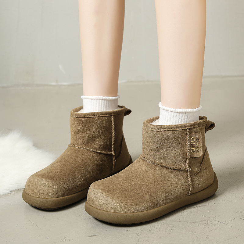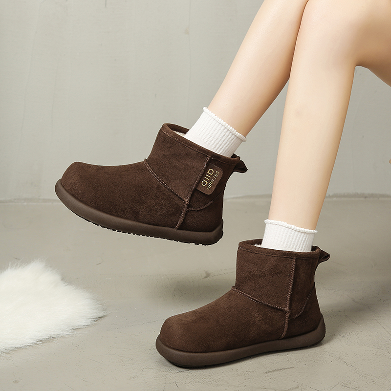 女靴子靴子韩版潮时尚保暖防滑绒面短靴圆头