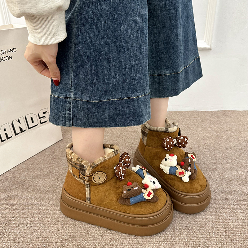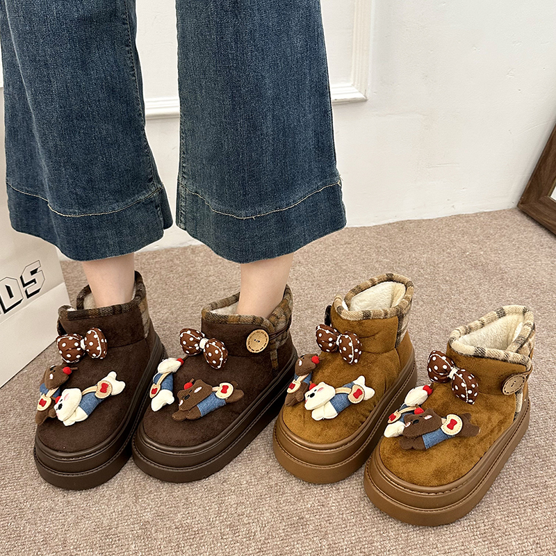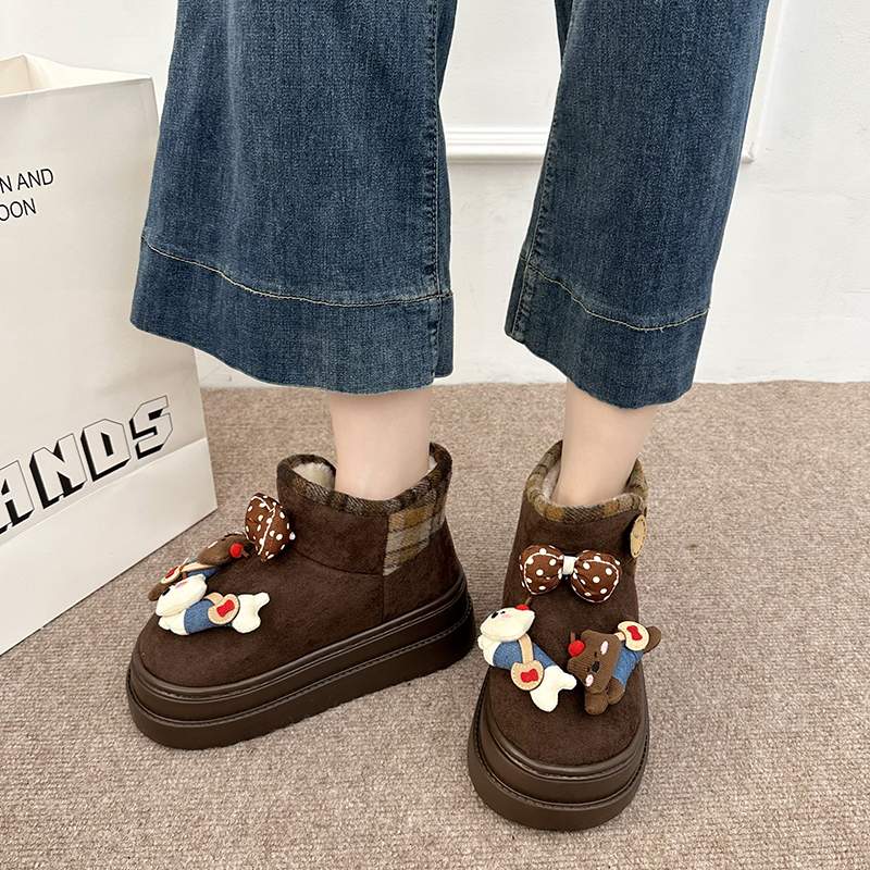 女靴子靴子韩版潮时尚保暖防滑绒面短靴圆头