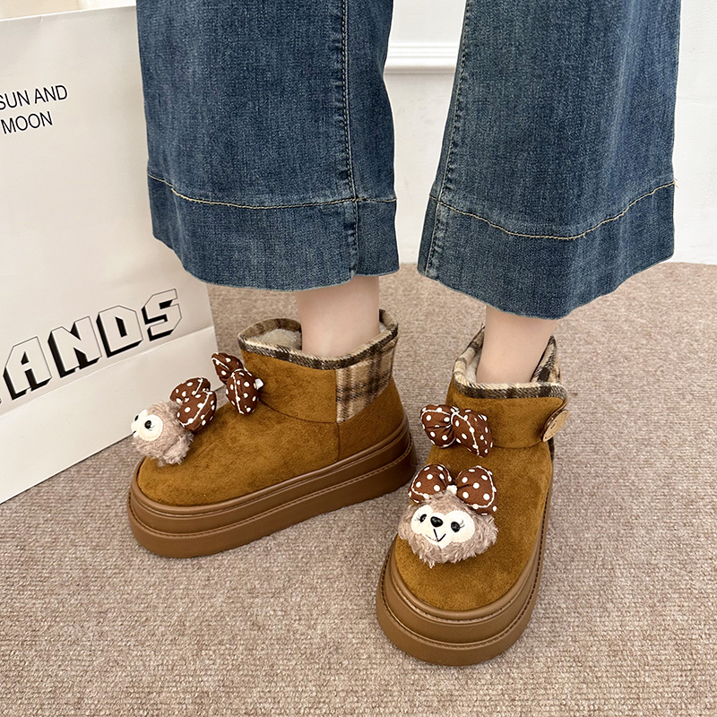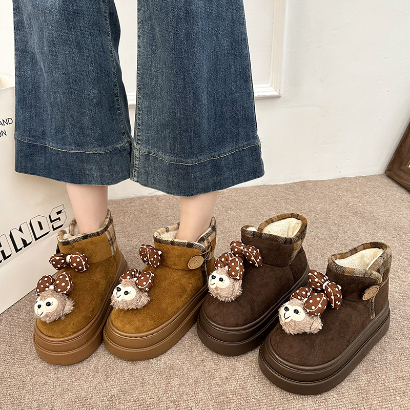 女靴子靴子韩版潮时尚保暖防滑绒面短靴圆头