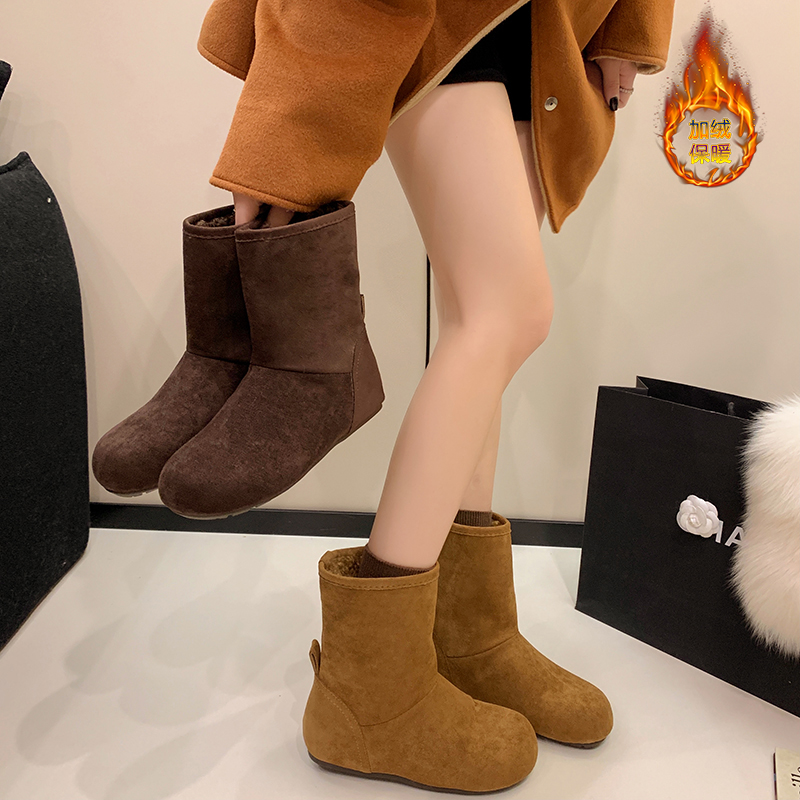女靴子靴子韩版潮时尚保暖防滑短靴圆头粗跟